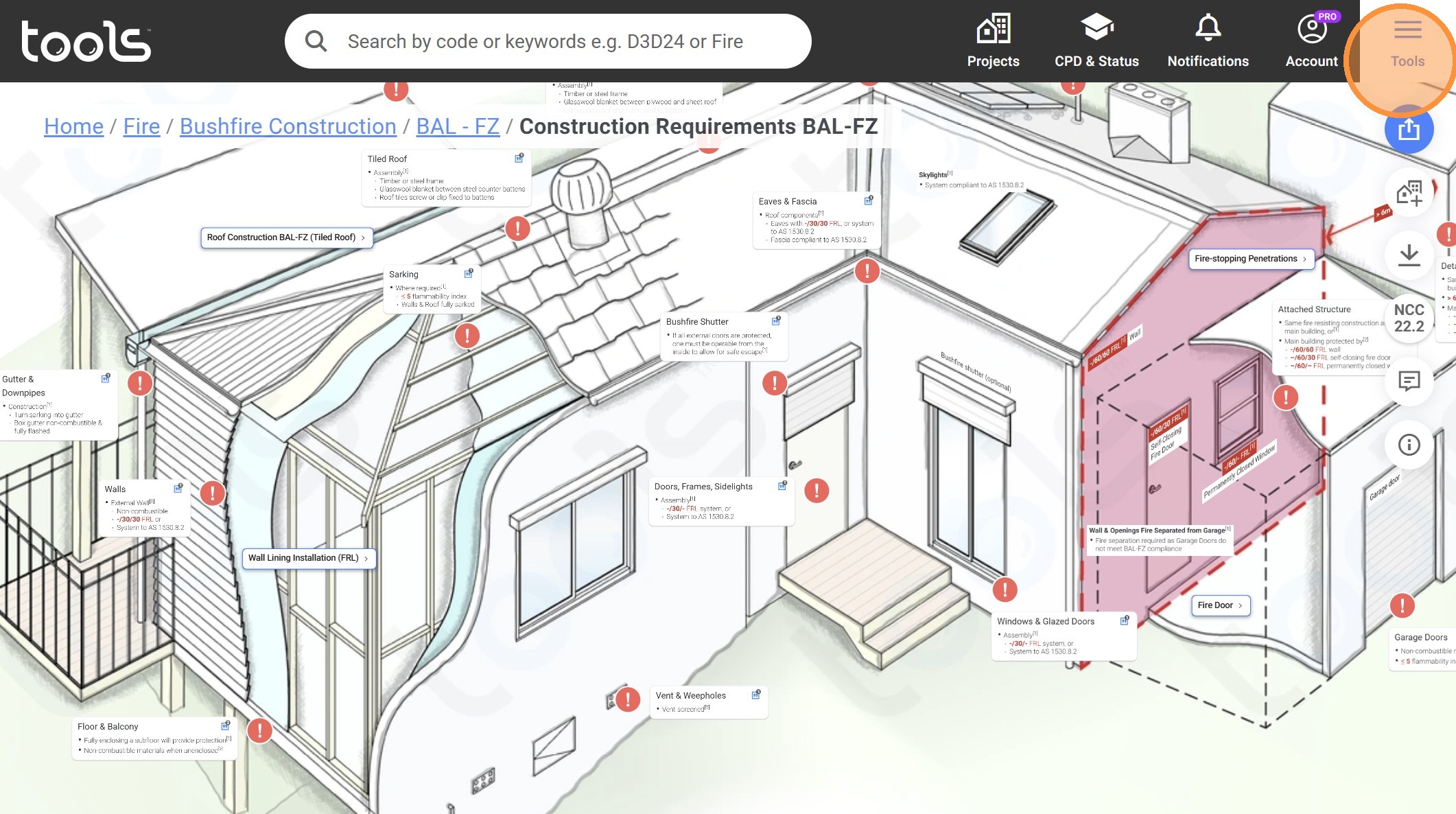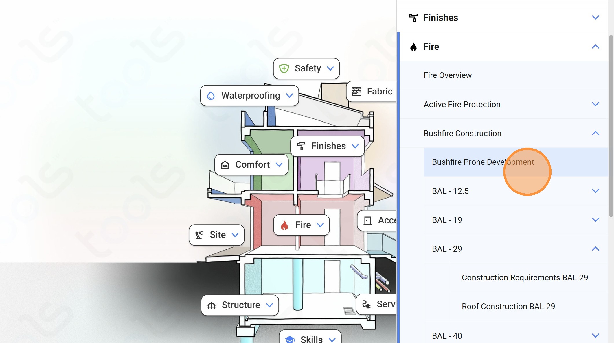 38. Click on the "Bushfire Construction" dropdown