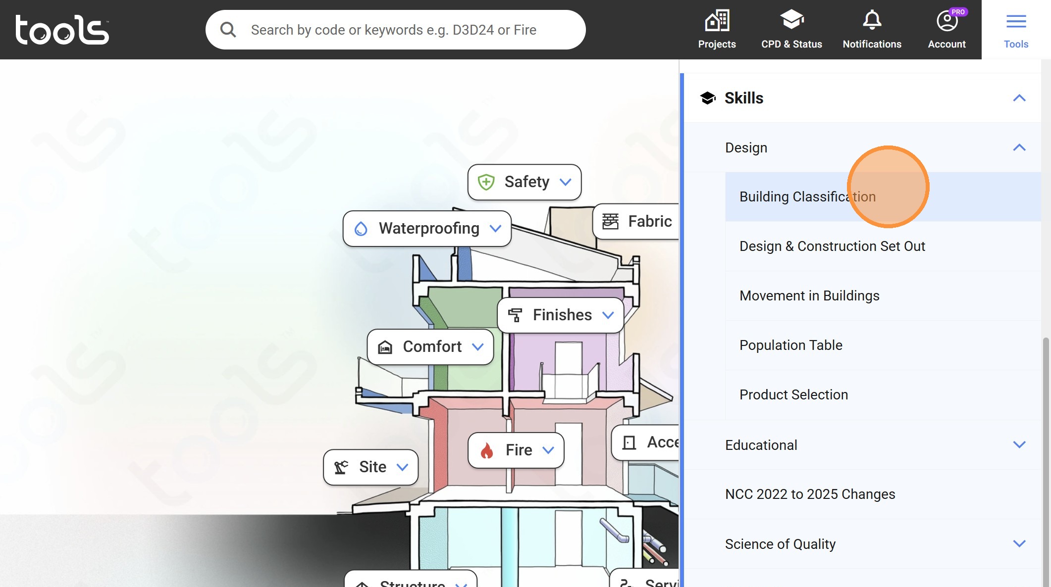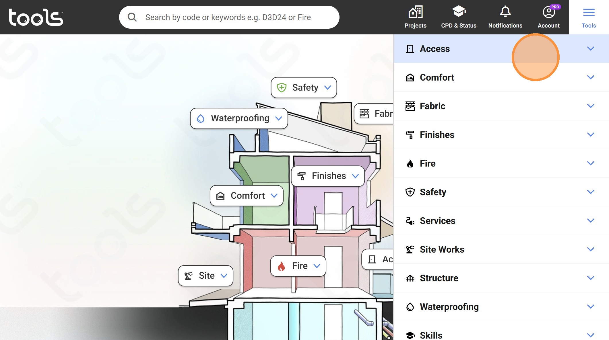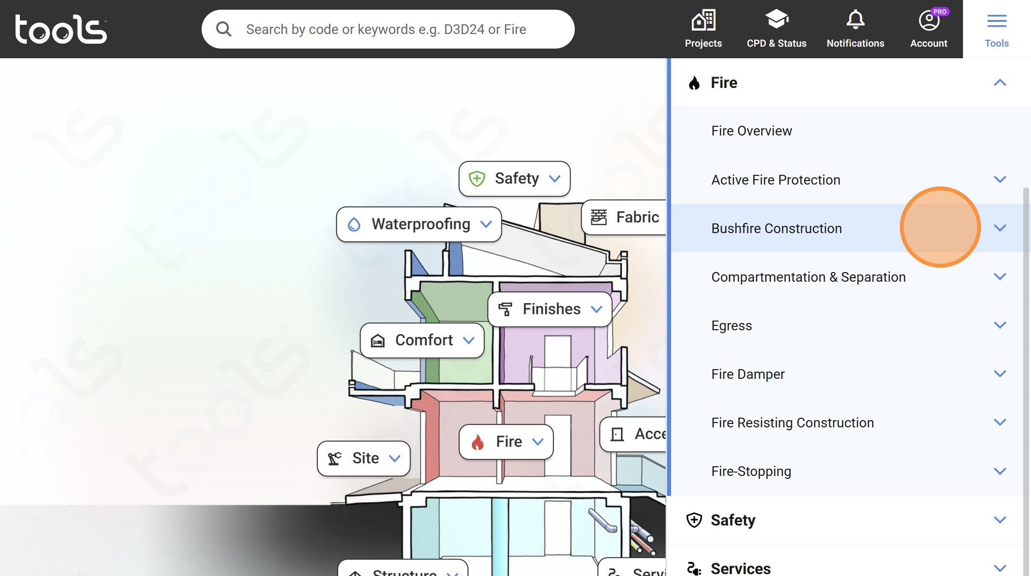 25. Click the "Search by code or keywords e.g. D3D24 or Fire Door" field.