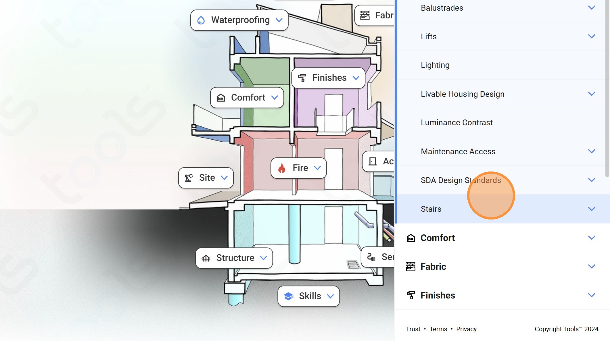 4. Click on the "Stairs" dropdown