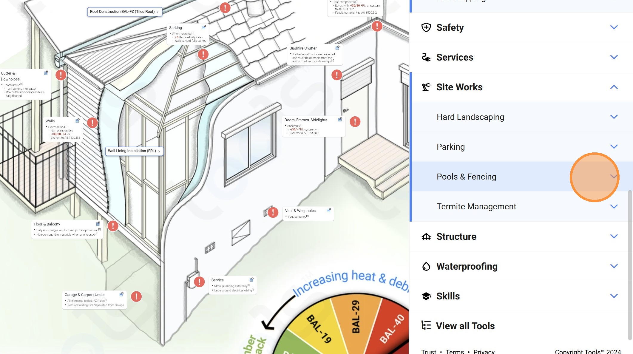 49. Click on the "Pools & Fencing" dropdown